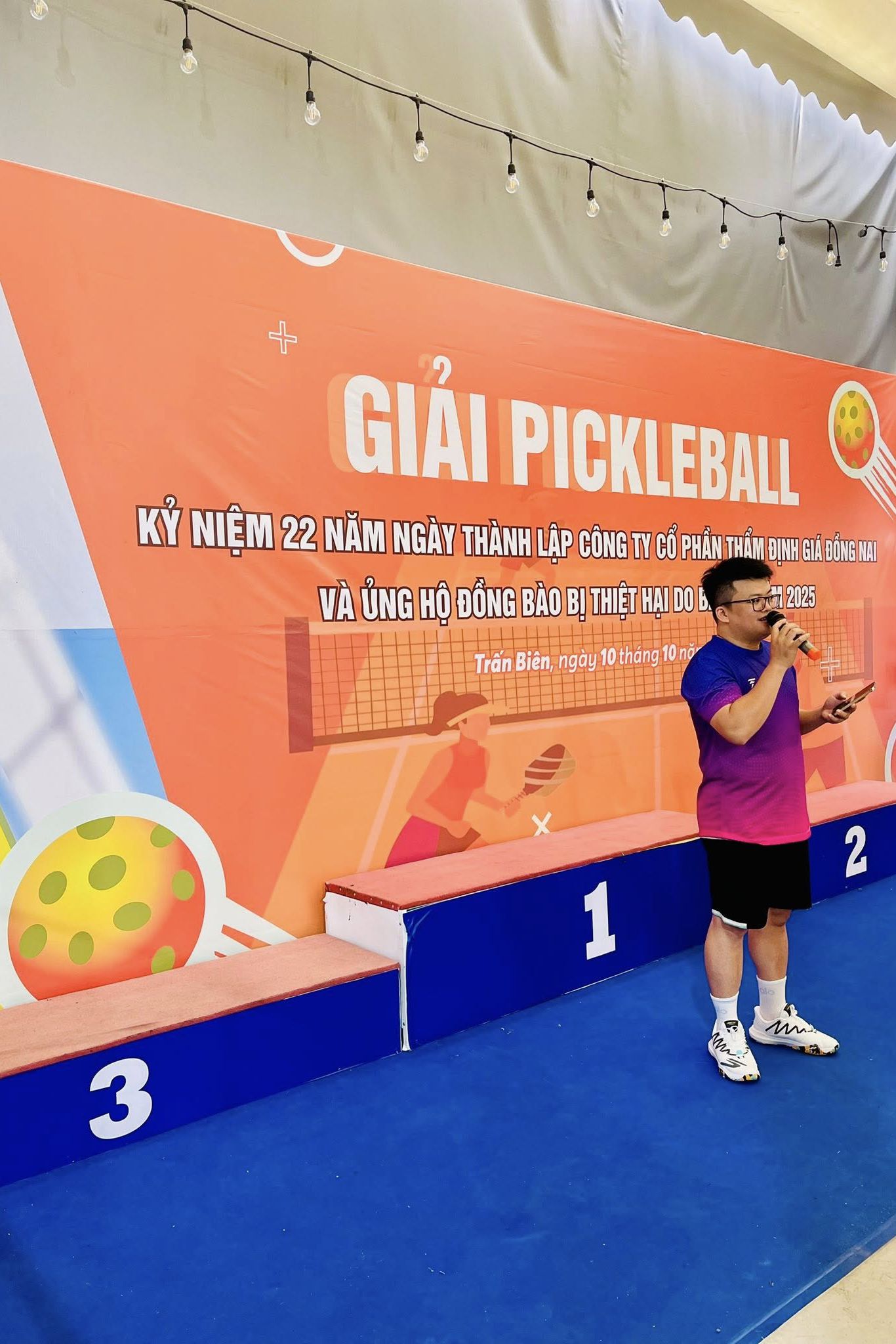 Nhân dịp sinh nhật đặc biệt này, Công ty Cổ phần Thẩm định giá Đồng Nai đã tổ chức Giải Pickleball gây quỹ ủng hộ đồng bào bị thiệt hại do bão lũ năm 2025. Giải đấu không chỉ là sân chơi lành mạnh, tăng cường tinh thần đồng đội mà còn là một hành động thiết thực hướng về cộng đồng. Mỗi cú đánh, mỗi trận đấu đều mang trong mình hy vọng và sự sẻ chia sâu sắc. Với sự nhiệt tình tham gia của các vận động viên và tấm lòng hảo tâm của toàn thể cán bộ nhân viên, chúng tôi vô cùng tự hào thông báo: Tổng số tiền gây quỹ thu được là 77.800.000 VNĐ (Bảy mươi bảy triệu, tám trăm ngàn đồng).